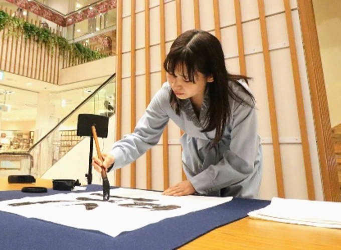 今回の創立100周年にあたり、卒業生で書家の上杉華澄先生に始まり、リレーのように書道の筆をバトンに見立てて、時間や空間を超えて多くの人をつないでいくことを企画しています。多くの人の想いがこめられたバトンに成長していく事を願っています。